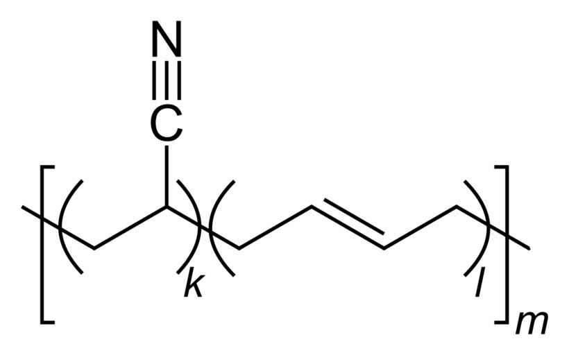 Keywords: Acrylnitril-Butadien-Copolymer.svg de Allg Struktur von Acrylnitril-Butadien-Copolymer/Nitrilkautschuk own Roland chem 2016-12-13 Nitrile rubber Cc-zero