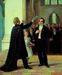 Keywords: Adam Oehlenschläger at Lund Cathedral 1829.jpg en Adam Oehlenschläger is publicly crowned with laurel by the Swedish poet Esaias Tegner in front of the high altar in Lund Cathedral as the Scandinavian King of Song The event cements his position as the leading proponant of Romanticism in the region and in the same time heralds the emergence the Scandinavismmovement Frederiksborg Museum Creator Constantin Hansen 1866 PD-old-100 Adam Gottlob Oehlenschläger Esaias Tegnér Constantin Hansen 1829 in Denmark 1829 in Sweden Interior of Lunds domkyrka Scandinavism Laurel wreaths in art |