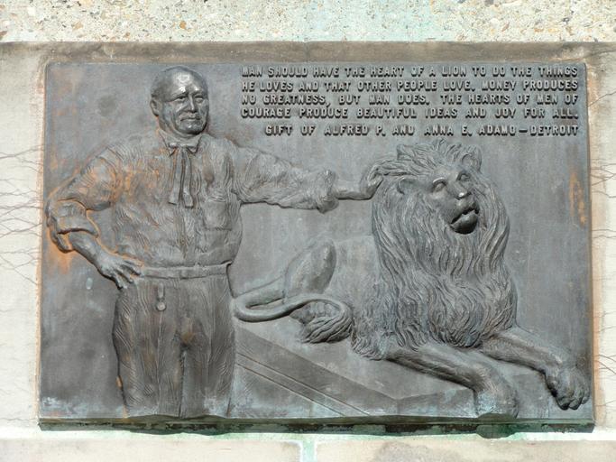 Keywords: Adamo plaque - Civic Center Park, Denver - DSC01204.jpg en Unusual plaque with man and lion Civic Center Park Denver Colorado USA 2011-07-29 own Daderot cc-zero Uploaded_with_UploadWizard Man and lion plaque Civic Center Park
