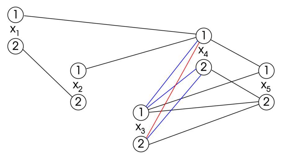 | Keywords: Adaptive-2.svg A constraint satisfaction problem to be used as an example for showing how adaptive consistency works This is the effect of the first step of the algorithm one of the blue lines is removed thus actually creating a new constraint Constraint satisfaction 2006-02-10 own assumed Tizio |