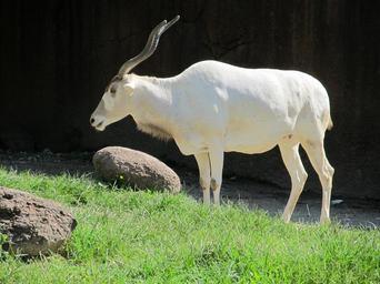 Keywords: addax white antelope sahara portrait mammal wildlife zoo enclosure profile horns nature screwhorn antelope grass