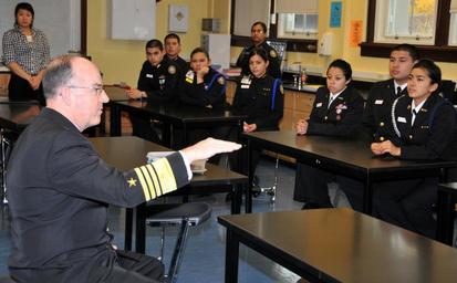 Keywords: Adm. J. C. Harvey Jr., commander, United States Fleet Forces Command, talks with students at Hyman G. Rickover Naval Academy.jpg en CHICAGO October 29 2009 Adm J C Harvey Jr commander United States Fleet Forces Command talks with students at Hyman G Rickover Naval Academy Oct 28 Harvey visited Rickover a Naval high school academy with more than 400 Naval Junior Reserve Officers Training Corps NJROTC cadets as part of the Chicago Public Schools CPS Principal for a Day program established as an annual event by the Chicago Mayor's Office in 1998 to allow businesses and organizations an opportunity to visit a school and shadow the principal to increase awareness of the accomplishments and challenges in CPS U S Navy photo by Scott A Thornbloom/Released 2009-10-28 22 49 08 https //www dvidshub net/image/219395/navy-admiral-visits-jrotc-cadets Scott Thornbloom other versions Custom license marker 2016 03 23 PD-USGov-Military-Navy Naval officers of the United States Navy Junior Reserve Officers Training Corps