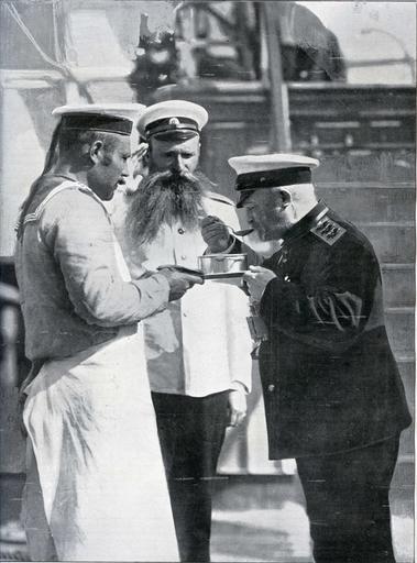 | Keywords: Admiral N.O.Essen tastes food at the "Argun" military transport, 1913 (fragment).jpg N O Essen tastes food at the Argun military transport board at Army and Fleet joint manoeuvres in Baltic sea; stood 2nd to the left - transport commander P Z Balk О Эссен снимает п обу пищи на военном т анспо те А гунь во в емя совместных манев ов а мии и флота на Балтийском мо е; стоит 2-й слева - команди т анспо та П З Балк http //img840 imageshack us/img840/2075/img253p jpg author 1913 main photo lower resolution PD-RusEmpire PD-old Argun military transport Nikolai Essen House of Balk Tasting |