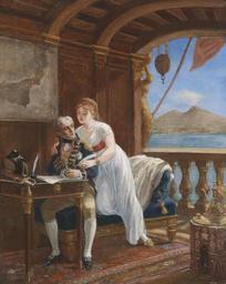 Keywords: Admiral Nelson und Lady Hamilton in Neapel.jpg Admiral Nelson und Lady Hamilton in Neapel oil on canvas 81 5 x 64 5 cm http //www dorotheum com Dorotheum firsthalf other date century 19 Creator Anonymous PD-old-100 Portrait paintings of Horatio Nelson Emma Lady Hamilton Naples in art 19th-century paintings of battles People with maps in art Paintings of couples Ship interiors People with ships in art Images from Dorotheum |
