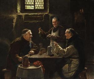 | Keywords: Adolf Humborg Drei Mönche bei der Vesper-Mahlzeit.jpg Drei Mönche bei der Vesper-Mahlzeit oil on canvas 41 x 48 cm signature and München place http //www hampel-auctions com/ Hampel Auctions by 1921 Creator Adolf Humborg Images from Hampel Auctions Adolf Humborg Genre paintings of monks Anti-clerical art Meals in art Beer in art PD-old-70-1923 |