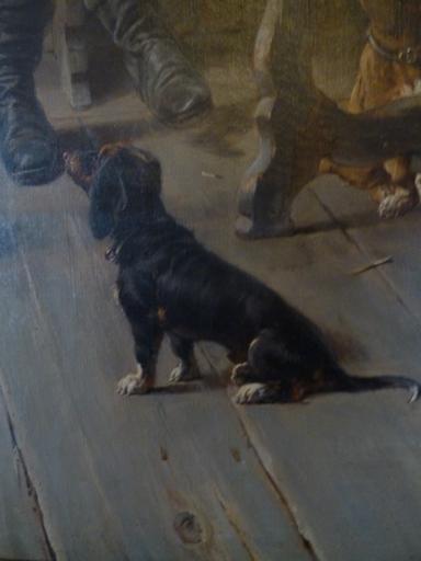 | Keywords: Adolf Humborg - Unk. kitchen painting detail - dachsund.jpg Dachshund<br> Detail Great Hall Pacific Lutheran Theological Seminary Oil on canvas Creator Adolf Humborg own Bastique 2011-11-11 Uploaded with UploadWizard Adolf Humborg Men in art People sitting at tables in art cc-zero PD-old-auto 1921 |