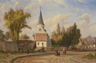 Keywords: Adolph Böhm - Belebte Dorfstraße (1890).jpg 1890 1890 oil canvas cm 27 5 41 accession number object history credit line exhibition history ABöhm ~ lower left signature http //www arcadja com/auctions/fr/private/bohm_adolf/oeuvres/96812/0/ Dorotheum Wien 11 Dez 2012 Lot 158 via ARCADJA auction results PD-old-100 Adolph Böhm Images from Dorotheum |