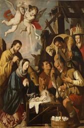 | Keywords: Adoración de los pastores, de Mateo Gilarte (Museo del Prado).jpg La obra representa el momento en que el Niño Jesús fue adorado por los pastores de Belén poco después de su nacimiento 1651 oil on canvas Size cm 146 228 Institution Museo del Prado Depositado en la Universidad Central de Barcelona https //www museodelprado es/coleccion/obra-de-arte/adoracion-de-los-pastores/e9cbb2d8-2fe5-474d-98d4-a7b786af8e05 accession number P05311 https //www museodelprado es/coleccion/obra-de-arte/adoracion-de-los-pastores/e9cbb2d8-2fe5-474d-98d4-a7b786af8e05 PD-old-100 Paintings of adoration by the shepherds in Spain 17th-century paintings of adoration by the shepherds Paintings by Mateo Gilarte in the Prado Museum 17th-century paintings in the Prado Museum Paintings in the Edifici històric de la Universitat de Barcelona 1651 paintings in Spain |