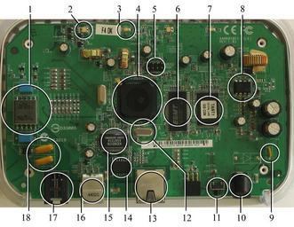 | Keywords: ADSL modem router internals labeled.jpg This image shows the parts found inside a Netgear DG632 ADSL Modem/router It acts as a router between an ethernet port and an ADSL broadband internet connection and provides typical home router features such as DHCP The labeled parts are as follows 1 Telephone decoupling electronics for ADSL <br /> 2 Multicolour LED displaying network status <br /> 3 Single colour LED displaying USB status <br /> 4 Main processor a TNETD7300GDU a member of Texas Instruments' AR7 product line <br /> 5 JTAG Joint Test Action Group test and programming port <br /> 6 RAM a single ESMT M12L64164A 8 MB chip <br /> 7 Flash memory obscured by sticker <br /> 8 Power supply regulator <br /> 9 Main power supply fuse <br /> 10 Power connector <br /> 11 Reset button <br /> 12 Quartz crystal <br /> 13 Ethernet port <br /> 14 Ethernet transformer Delta LF8505 <br /> 15 KS8721B ethernet PHY transmitter receiver <br /> 16 USB port <br /> 17 Telephone RJ11 port <br /> 18 Telephone connector fuses Photographed by User Mike1024 2006-05-07 User Mike1024 on http //en wikipedia org en wikipedia Originally posted on http //en wikipedia org en wikipedia Board of ADSL modem 00 19 13 January 2009 UTC ADSL modems Network hardware Taken with Canon PowerShot A80 Single-board computers |