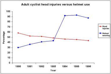 | Keywords: Adult cyclist head injuries versus helmet use in New Zealand.jpg  Adult cyclist head injuries versus helmet use in New Zealand svg en Graph of adult cyclist head injuries versus helmet use in New Zealand Own 2008-03-29 Alan Liefting Data from Table 1 in Changes in head injury with the New Zealand bicycle helmet law<ref> cite journal Robinson D L Changes in head injury with the New Zealand bicycle helmet law Accident Analysis and Prevention 33 687-697 2001 http //www cycle-helmets com/AAP2001DLRNZHI pdf 2008-03-29 </ref> References reflist Cycling in New Zealand Road transport safety Files by Alan Liefting |
