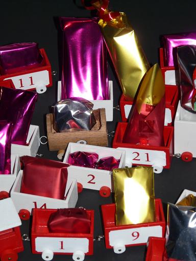 Keywords: advent calendar gifts nicholas train wagons packed surprise sparkle advent