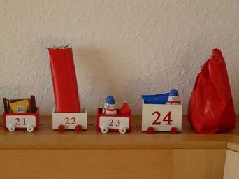 Keywords: advent calendar train gifts nicholas wagons packed surprise advent wooden train