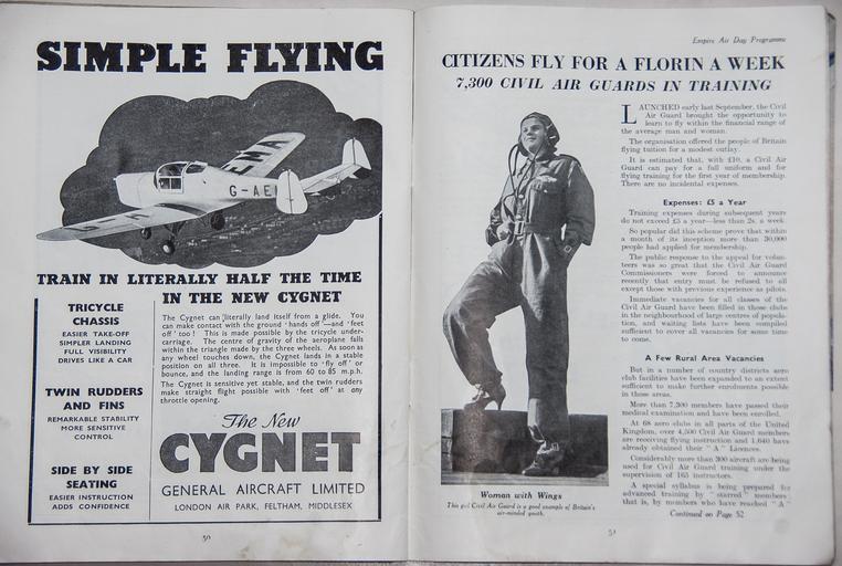 Keywords: advert plane aeroplane flying woman learning historic air show 1939 raf british empire display england