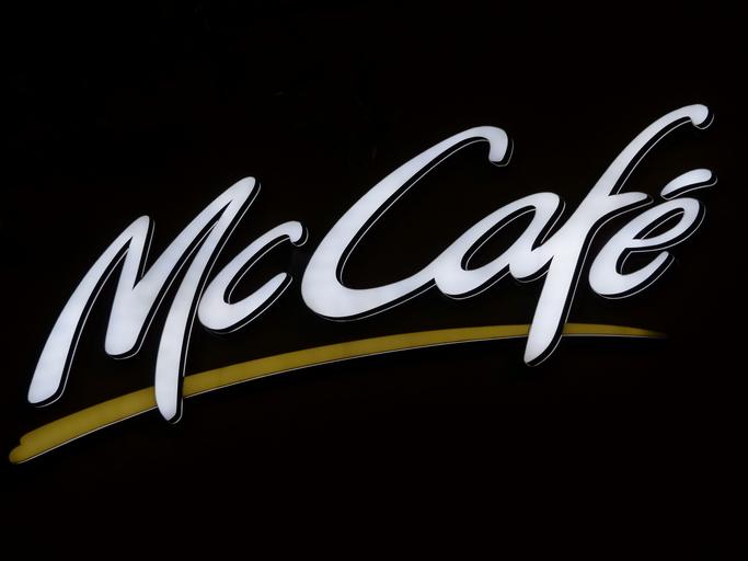 Keywords: advertisement neon sign cafe mccafe mcdonalds shield advertising sign lettering white