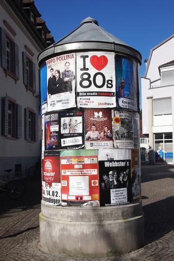 Keywords: advertising pillar litfaß posters announcement heart city concerts advertising space