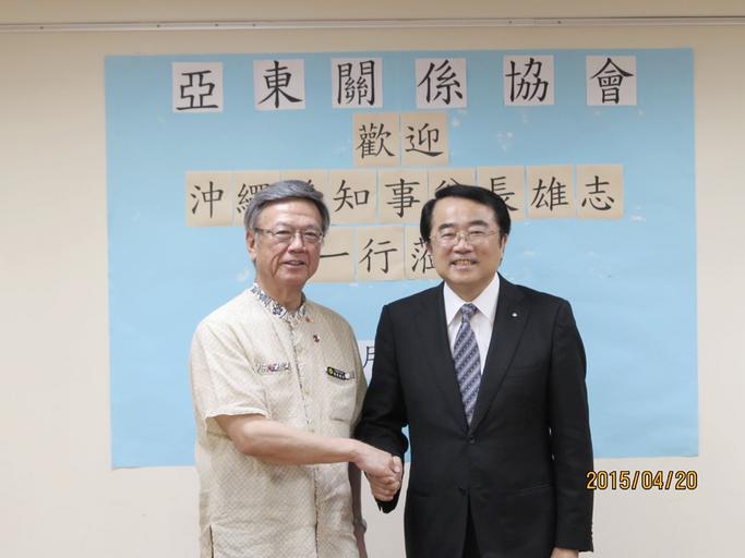 | Keywords: AEAR Li Jiajin and Takeshi Onaga 20150420.jpg zh-tw 亞 係協 長 嘉 (右)接見日 沖繩縣知事翁長雄志(左) 2015-04-20 11 42 04 https //www flickr com/photos/101840916 N05/16596597664 亞 係協 other versions Custom license marker 2016 01 23 Association of East Asian Relations Takeshi Onaga |