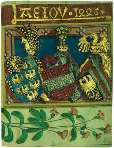 Keywords: AEIOU Buchmalerei in der Handregistratur König Friedrichs IV 1446.jpg AEIOU Buchmalerei in der Handregistratur König Friedrichs IV des späteren Kaisers Friedrich III 1446 http //www aeiou at/aeiou encyclop data image a/a128205a jpg 1446 Creator Unknown PD-old-100 Frederick III Holy Roman Emperor A E I O U 1446 Altösterreich coat of arms Coats of arms of the Dukes of Austria State coats of arms of Upper Austria 15th-century illuminated manuscripts Pfauenstoß |