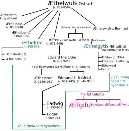 Keywords: Aelfgifu-genealogy.svg en Genealogy of Ælfgifu testatrix and wife of King Eadwig own MHz`as Anglo-Saxon monarchs Family trees of England