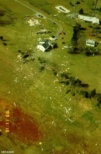 Keywords: Aerial view 3 after the 1989 Huntsville Tornado.jpg en Damage from the November 15 1989 tornado to strike Huntsville Alabama photographed by NWS Birmingham during their storm survey 1989-11-16 http //www srh noaa gov/images/bmx/significant_events/1989/11_15/graphics/ C S;O D National Weather Service Birmingham Alabama office other versions PD-USGov 1989 Huntsville Tornado Aerial photographs of Alabama