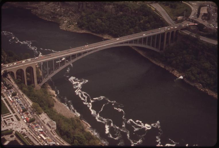 Keywords: AERIAL VIEW OF NIAGARA RIVER BELOW THE FALLS, SHOWING RAINBOW BRIDGE WHICH JOINS THE AMERICAN AND CANADIAN SIDES.... - NARA - 549469.tif Scope and content General notes 549469 Local identifier 412-DA-6984 Environmental Protection Agency 12/02/1970 - NARA-Author Burns George 1896-1996 Photographer 1340567 <br /> Niagara Falls Niagara New York state United States North and Central America inhabited place 4202458 43 083 -79 05 <br /> Still Picture Records Section Special Media Archives Services Division NWCS-S National Archives at College Park 8601 Adelphi Road College Park MD 20740-6001 05/1973 Record group Record Group 412 Records of the Environmental Protection Agency 1944 - 2006 Record group ARC 708 DOCUMERICA The Environmental Protection Agency's Program to Photographically Document Subjects of Environmental Concern compiled 1972 - 1977 Series ARC 542493 File unit File unit ARC Variant control numbers Agency-Assigned Identifier 117/24/006984<br /> NAIL Control Number NWDNS-412-DA-6984 yes Other versions <gallery> File AERIAL_VIEW_OF_NIAGARA_RIVER_BELOW_THE_FALLS _SHOWING_RAINBOW_BRIDGE_WHICH_JOINS_THE_AMERICAN_AND_CANADIAN_SIDES _-_NARA_-_549469 tif tif File AERIAL_VIEW_OF_NIAGARA_RIVER_BELOW_THE_FALLS _SHOWING_RAINBOW_BRIDGE_WHICH_JOINS_THE_AMERICAN_AND_CANADIAN_SIDES _-_NARA_-_549469 jpg jpg </gallery> NARA-cooperation PD-USGov Rainbow Bridge Niagara Falls 1973 in Ontario 1973 in New York NARA TIF images with categorized JPGs |