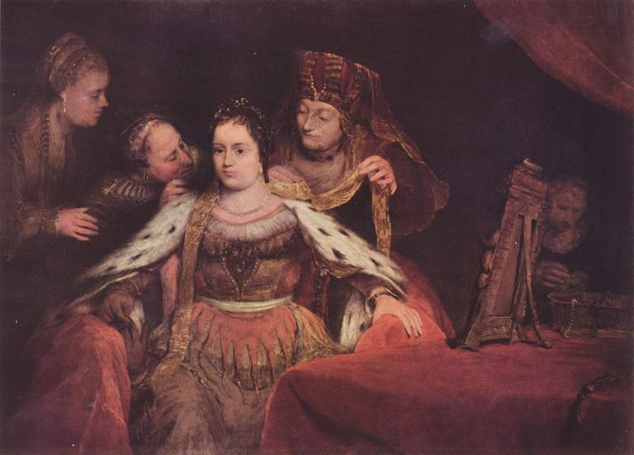 | Keywords: Aert de Gelder 003.jpg Artwork de Die Judenbraut Esther läßt sich schmücken oil canvas cm 139 163 Alte Pinakothek The Yorck Project 10 000 Meisterwerke der Malerei DVD-ROM 2002 ISBN 3936122202 Distributed by DIRECTMEDIA Publishing GmbH 1684 Creator Aert de Gelder http //mail wikipedia org/pipermail/wikide-l/2005-April/012195 html Other versions PD-old-100 PD-Art-YorckProject Aert de Gelder Judenbraut Baroque paintings of Bible stories 1684 paintings Esther brides in art Jewish brides Dutch paintings in the Alte Pinakothek Gelder Aert de Paintings in the Alte Pinakothek flat list Gelder Aert de Paintings in the Alte Pinakothek not yet listed in the Alte Pinakothek pages Baroque paintings of women 1680s paintings in Bavaria 17th-century paintings in the Alte Pinakothek 17th-century paintings of Old Testament 17th-century religious paintings in Germany Jewish women in art |