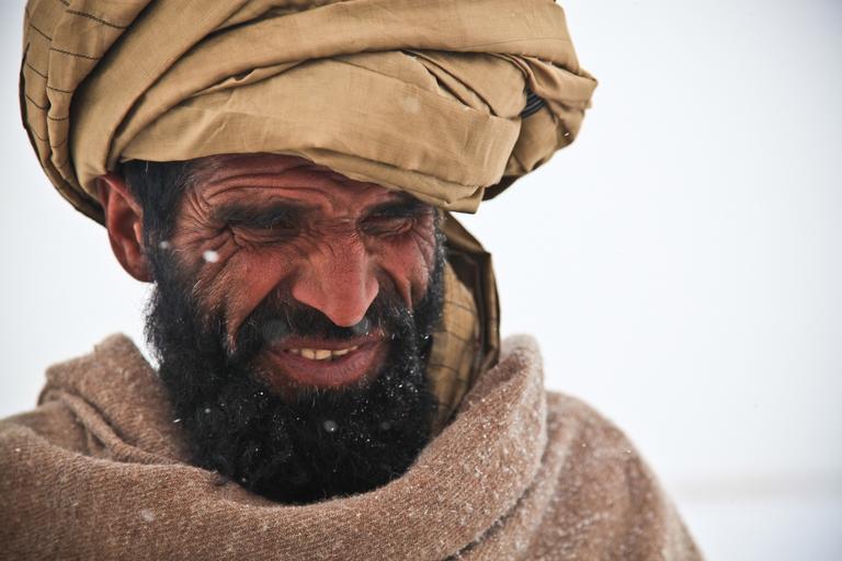 Keywords: afghani man portrait person cold winter war icy snowflakes hooded freezing cold freezing turban tradition