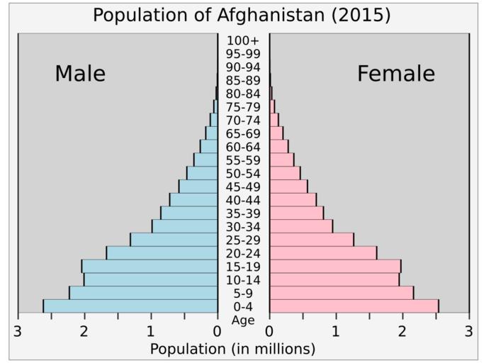 | Keywords: Afghanistanpop.svg translate yes en Current population pyramid of Afghanistan from UN estimates World Population Prospects http //esa un org/unpd/wpp/Download/Standard/Population/ The 2015 Revision 2014-08-03 own Delphi234 cc-zero Population pyramids of Afghanistan |
