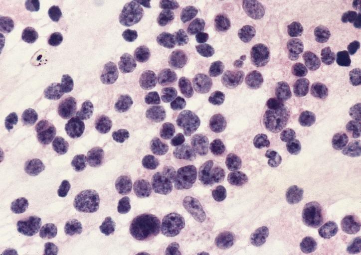 | Keywords: AFIP405820M-MEDULLOBLASTOMA.jpg  en AFIP405820M-MEDULLOBLASTOMA CNS/Micro Dense coarse and moderately pleomorphic nuclei are common http //peir2 path uab edu/scripts/acdis dll cmd see fp /dbih/AFIP/00405820 tif fmt jpg q 100 h 512 The Armed Forces Institute of Pathology 2009-04-11 PD-USGov Medulloblastoma |