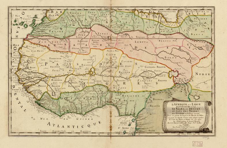 Keywords: Africa, or Greater Libya WDL142.png Artwork ru Сансон иколас 1600-1667 fr Sanson Nicolas 1600-1667 en Sanson Nicolas 1600-1667 zh 桑 尼古拉斯 1600-1667 pt Sanson Nicolas 1600-1667 ar سانسون، نيكولاس 1600-1667 es Sanson Nicolas 1600-1667 ru Аф ика или Великая Ливия fr L Afrique ou Libye ultérieure en Africa or Greater Libya zh 洲或大利比亚 pt África ou Grande Líbia ar أفريقيا، أو ليبيا الكبرى ru Эта ка та Аф ики аботы иколя Сансона ко олевского геог афа п и дво е Луи XIII и Луи XIV кото ый ши око известен как основатель ф анцузской ка тог афии была издана Сансоном в его собственном доме в Па иже в 1679 году Согласно Сансону ка та основана на сводных сведениях поче пнутых из д угих ка т а также на наблюдениях Сэмьюэля Блома та Дополнительным источником могла также служить абота голландского авто а Олфе та Даппе а 1668 года <i>Naukeurige Beschrijvingen der Afrikaensche gewesten </i> Описание Аф ики Континент п едставлен как Большая Ливия а сама ка та посвящена главным об азом егиону Саха ы на севе е Аф ики и п илегающим землям западной Аф ики п ости ающимся от Гвинеи и че ного побе ежья до убии на востоке <br>Аф ика западная; Саха а de l'Afrique Le continent est présenté comme « la Libye ultérieure » et la carte se concentre sur la région saharienne de l'Afrique du Nord et les terres environnantes de l'Afrique de l'Ouest qui s'étendent depuis la Guinée et la Côte noire jusqu' à la Nubie à l'est <br>Afrique Ouest; Sahara of Africa The continent is presented as Greater Libya and the map concentrates on the Saharan region of north Africa and the surrounding land of west Africa stretching from Guinea and the black coast to Nubia in the east <br>Africa West; Sahara zh 这幅尼古拉斯·桑 制 的 洲 图,由桑 自己的出版公司于 1679 年 巴黎出版,他是国王路易十三和十四时 的皇家 理学家,常被称为法国制图之父 据桑 述,这幅 图综合了其他 图的信息以及 塞缪尔·布鲁马特的 察 还引用了荷兰 家奥尔福特 达波 1668 年的 品 <i> Naukeurige Beschrijvingen der Afrikaensche gewesten </i>( 洲描述 ) 大陆部分被称为 大利比亚 , 图集中描述了北 的撒哈拉区域,以及西 周边 区,西起几内亚,经黑海岸, 至努比亚 <br>西 ; 撒哈拉 pt Este mapa da África por Nicolas Sanson geógrafo real dos reis Luís XIII e XIV comumente conhecido como pai da cartografia francesa foi publicado por Sanson na sua própria casa em Paris no ano de 1679 O mapa inspirou-se de acordo com Sanson num composto de informações extraídas de outros mapas bem como a partir de observações de Samuel Blomart Ele também pode ter sido extraído da obra do escritor holandês Olfert Dapper datada de 1668 <i>Naukeurige Beschrijvingen der Afrikaensche gewesten</i> Descrição da África O continente é apresentado como a Grande Líbia e o mapa concentra-se na região Saariana ao norte da África e nos territórios adjacentes da África Ocidental se extendendo da Guiné e a costa negra até a Núbia ao leste <br>África Oeste; Saara ar نشرت هذه الخريطة لأفريقيا، والتي رسمها نيكولاس سانسون الجغرافي الملكي الخاص بالملك لويس الثالث عشر والرابع عشر والمعروف باسم الأب المؤسس لعلم رسم الخرائط الفرنسي، على يد دار النشر الخاصة بسانسون عام 1679 في باريس ووفقا لسانسون، فإن الخريطة ترتكز على تركيبة من المعلومات المستمدة من الخرائط الأخرى فضلا عن ملاحظات صامويل بلومارت كما يمكن أن تكون وضعت بناء على عمل الكاتب الهولندي أولفرت دابر في 1668، <i> </i>وصف أفريقيا تُبين القارة على أنها ليبيا العظمى وتركز الخريطة على منطقة الصحراء الكبرى في شمال أفريقيا وأراضي غرب أفريقيا المحيطة بها التي تمتد من غينيا والساحل الأسود إلى النوبة فى الشرق <br>أفريقيا الغربية; الصحراء الكبرى es Este mapa de África de Nicolas Sanson geógrafo real del rey Luis XIII y XIV y conocido como el padre de la cartografía francesa fue publicado por la propia casa de Sanson en 1679 en París El mapa se basaba según Sanson en una combinación de información tomada de otros mapas así como «sobre las observaciones de Samuel Blomart» También puede haber tomado información del trabajo de 1668 del escritor holandés Olfert Dapper <i>Naukeurige Beschrijvingen der Afrikaensche gewesten </i> Descripción de África El continente se presenta como «Gran Libia» y el mapa se centra en la región sahariana del norte de África y las tierras circundantes al oeste de África desde Guinea y la costa negra hasta Nubia en el este <br>África Occidente; Sahara 1679 ru Ка ты fr Cartes en Maps zh 图 pt Mapas ar خرائط es Mapas en 1 map color ; 33 x 54 centimeters ru Библиотека Конг есса fr Bibliothèque du Congrès en Library of Congress zh 国会图书馆 pt Biblioteca do Congresso ar مكتبة الكونغرس es Biblioteca del Congreso http //hdl loc gov/loc wdl/dlc 142 object history exhibition history credit line place of creation ru Аф ик
