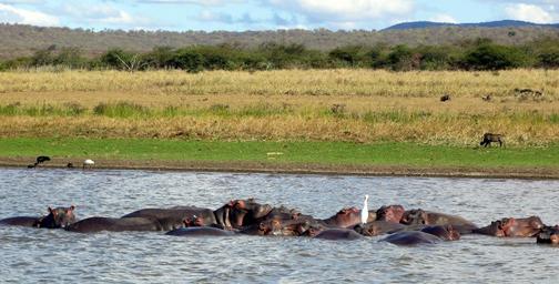 Keywords: africa wild nature safari wildlife animal mammal reserve wilderness game outdoor environment water river hippos family pod