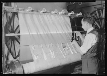 Keywords: nara:arcid=518558 u.s. national archives usnationalarchives lewis hine lewishine 1937 paterson new jersey newjersey the great depression thegreatdepression blackandwhite monochrome photo border black and white Original Caption: Paterson, New Jersey - Textiles. After all the sections required for the warp have been wound on to the frame, the ends are ready to be wound from the frame onto the beam. The operator is shown tying the ends of the section on to the beam paper. The paper is used on beams having no flanges to keep the warp threads in position on the beam, March 1937 U.S. National Archives’ Local Identifier: 69-RP-319 Photographer: Hine, Lewis Subjects: The New Deal Tennessee Valley Authority Works Progress Administration Work Portraits The Great Depression Persistent URL: research.archives.gov/description/518558 Repository: Still Picture Records Section, Special Media Archives Services Division (NWCS-S), National Archives at College Park, 8601 Adelphi Road, College Park, MD, 20740-6001. For information about ordering reproductions of photographs held by the Still Picture Unit, visit: www.archives.gov/research/order/still-pictures.html Reproductions may be ordered via an independent vendor. NARA maintains a list of vendors at www.archives.gov/research/order/vendors-photos-maps-dc.html Access Restrictions: Unrestricted Use Restrictions: Unrestricted Original Caption: Paterson, New Jersey - Textiles. After all the sections required for the warp have been wound on to the frame, the ends are ready to be wound from the frame onto the beam. The operator is shown tying the ends of the section on to the beam paper. The paper is used on beams having no flanges to keep the warp threads in position on the beam, March 1937 U.S. National Archives’ Local Identifier: 69-RP-319 Photographer: Hine, Lewis Subjects: The New Deal Tennessee Valley Authority Works Progress Administration Work Portraits The Great Depression Persistent URL: research.archives.gov/description/518558 Repository: Still Picture Records Section, Special Media Archives Services Division (NWCS-S), National Archives at College Park, 8601 Adelphi Road, College Park, MD, 20740-6001. For information about ordering reproductions of photographs held by the Still Picture Unit, visit: www.archives.gov/research/order/still-pictures.html Reproductions may be ordered via an independent vendor. NARA maintains a list of vendors at www.archives.gov/research/order/vendors-photos-maps-dc.html Access Restrictions: Unrestricted Use Restrictions: Unrestricted |