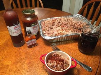 MAKE A MEME View Large Image After a trip to Pinehurst to see Mom. Dinner is some kickass Bar-B-Que from Bill Hall @bh43bbqsauce. Damn Tasty. All 3 sauces (Hot, Sweet and Original), a glass of red wine in my mason jar. Life is Good! #barbque Explore TW_Smith's 493 ...