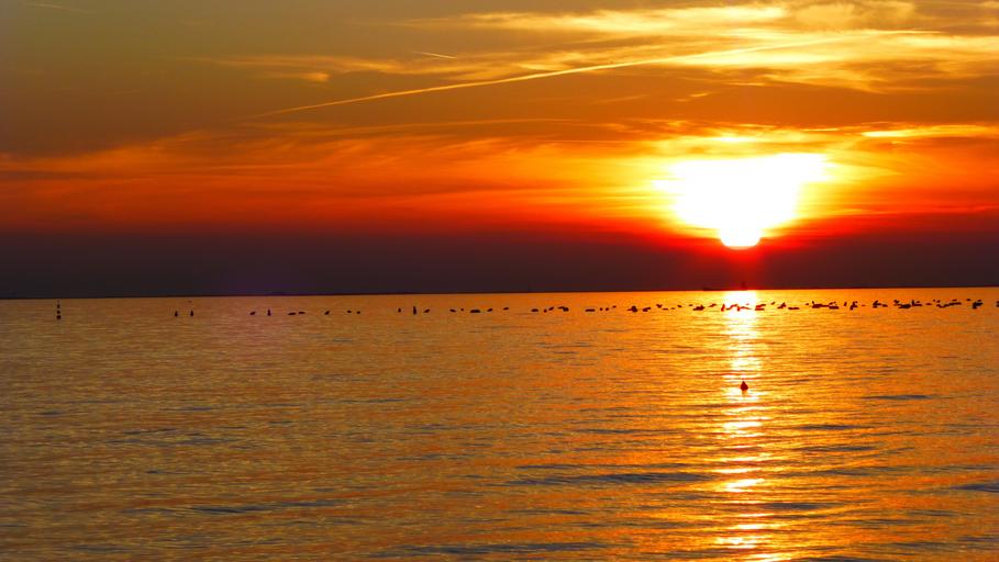 Keywords: afterglow abendstimmung dusk sunset nature evening atmosphere evening sky red sun sunbeam sea