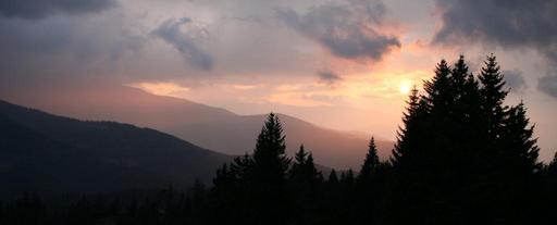Keywords: afterglow gewitterstimmung dramatic sky weather mood abendstimmung orange sky evening sky sunset sky forest mountains evening