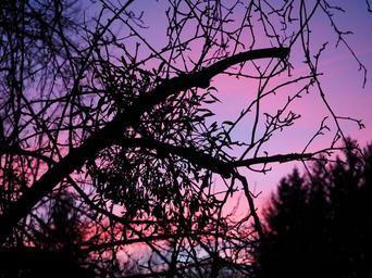 Keywords: afterglow mistletoe evening abendstimmung sunset evening sky sky red reddish purple pink coloring sky color trees aesthetic blue bluish violet