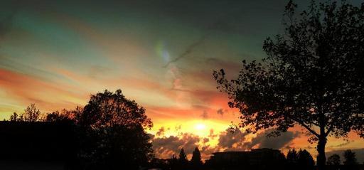 Keywords: afterglow sky black silhouette romance trees landscape mood nature dusk clouds sunset sun home bush fiery october abendstimmung