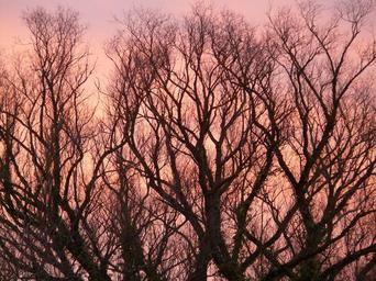Keywords: afterglow trees branches aesthetic nature landscape sky sunset red pink