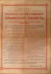 | Keywords: Agitation flyer crimea russians resettlement.jpg en Agitation flyer for Crimea resettlement by Russians Promising benefits and financial aid for new coming Russian families for fertile Crimean region late 1940-ies early 1950-ies uk Агітаційна листівка для заселення К иму осіянами Обіцяюча вигоди і фінансову допомога для нових осійських сімей п и пе еселенні в одючю К имську область кінець 1940-х початок 1950 1951-12-21 http //news online ua/758890/v-rossii-snova-razoblachili-vrane-okkupantov-o-kryme-opublikovan-dokument/ Пе еселенческий отдел п и Совете инист ов СССР 1947 г Resettlement Department under the Council of Ministers of USSR 1947 other versions Benefits of resettlement being regulated by RESOLUTION OF THE USSR Council of Ministers from 21 12 1951 N 5263 about benefits for resettlement for 1952 year Custom license marker 2016 11 16 PD-UA Crimea Documents of Crimea |
