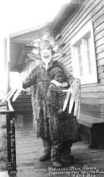 | Keywords: Aglegmiut shaman in costume, with boy, ca 1912 (THWAITES 115).jpeg check categories 27 October 2016 3 Photograph Creator John E Thwaites Although forbidden by the Christian missionaries these masks and outsized hands were still made and used in the early 1900s by the Aglegmiut The photographs taken by John Thwaite are believed to be the only images of an actual shaman wearing these ceremonial costumes Caption on image Eskimo medicine man Alaska exorcising evil spirits from a sick boy Working to beat the Devil PH Coll 247 156 Subjects LCTGM Shamans--Alaska--Nushagak; Boys--Alaska--Nushagak; Benches--Alaska--Nushagak; Wooden sidewalks--Alaska--Nushagak Subjects LCSH Koniagmiut Eskimos--Clothing--Alaska--Nushagak; Koniagmiut Eskimos--Alaska--Nushagak--Rites and ceremonies; Eskimo children--Alaska--Nushagak depicted place United States--Alaska--Nushagak ca 1912 Institution University of Washington UWASH-THWAITES-source accession number thwaites 115 PD-old-auto-1923 1940 Information field Order Number THW093 Images from the John E Thwaites Photographs of Alaska Collection to check Shamans Boys Benches |