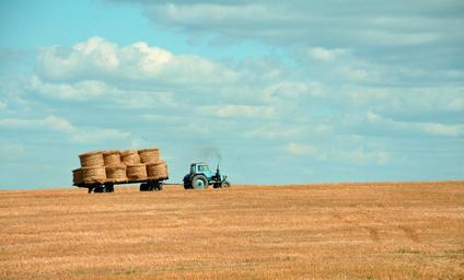 Keywords: agriculture farming field plant crop harvest rural summer countryside grain hay tractor straw cultivated golden sky meadow work machine