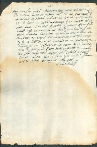 | Keywords: AHG001-p23.jpg LargeImage es Loor Jara Susana 2010 Catalogo del Fondo Documental de Manuscritos del Archivo Histórico del Guayas AHG Tomo I página s 9 Guayaquil Ecuador Banco Central del Ecuador y Ministerio de Cultura del Ecuador MFN 0001 “ AHG / Escritura Publica Juicio Don Diego de Sayama Cacique sobre tributos de los indios de Yaguachi / EscribanÃa de Hernando de Arrendó fechado en Santiago de Guayaquil a 10 VI 1579 2013-01-17 12 44 30 own Jojagal cc-zero Check categories 2013 January 18 5 Yaguachi Guayas Province Uploaded with UploadWizard Documents of 1579 in Ecuador Royal Audience of Quito |