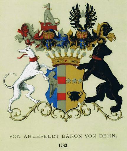 | Keywords: Ahlefeldt Baron von Dehn Wappen 1783 01.jpg de Wappen Ahlefeldt Baron von Dehn aus dem Jahr 1783 Scan aus dem Buch Die Schleswig-Holsteinische Ritterschaft aus dem Jahr 1869 L von Ahlefeldt und W A von Rumohr 1869 PD-old Coats of arms of Ahlefeldt-Dehn family |