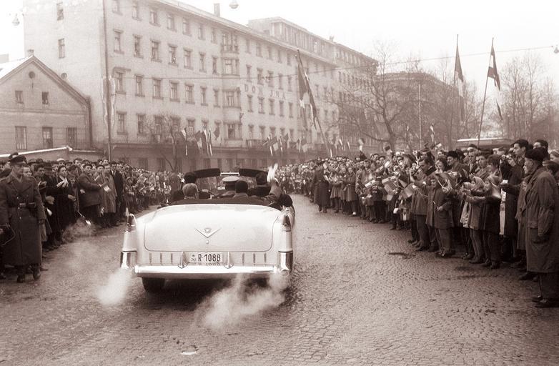 Keywords: Ahmed Sékou Touré na obisku v Ljubljani 1961 (2).jpg Ahmed Sékou Touré na obisku v Ljubljani 272109 1961-01-08 creator Danilo Škofič PD-Slovenia 1961 in Slovenia 20th-century black and white photographs of Ljubljana State visits in Ljubljana Ahmed Sékou Touré Historical images of Liberation Front Square Ljubljana Historical images of automobiles in the Center District Ljubljana Photographs by Danilo Škofič Cobblestone streets in Ljubljana License plates of Yugoslavia Cadillac Series 62 Convertible 1954 Bilateral relations of Guinea Bilateral relations of Yugoslavia |