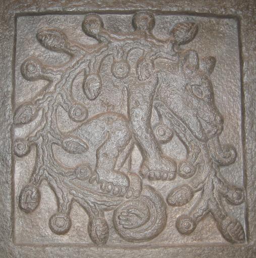 Keywords: AhuitzotlGlyphHarvard.jpg Name glyph of Aztec emperor Ahuitzotl 19th century replica cast in Peabody Museum collection Harvard University Cambridge Massachusetts USA; original stone plaque in temple at Tepoztlan south of Mexico City from about 1500 Photo by Infrogmation 2007-06 Infrogmation New Orleans Tepoztlán Ahuitzotl Aztec art Meso-American Collection Peabody Museum Harvard University