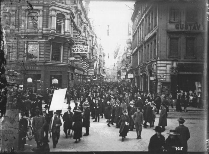 | Keywords: AHW Petersstrasse Fruehjahrsmesse Leipzig 1919.jpg de Die Peterstraße im Jahre 1919 vom Markt aus gesehen Links ist das ehemalige Messehaus National Kriegsverlust zu sehen Christoph Kaufmann Fotoatelier Hermann Walter Leipzig 1918 “1935 Pro Leipzig Leipzig 2010 ISBN 978-3-936508-61-1 Atelier Hermann Walter Bernhard Müller 1860; 1930 Karl Walter 1877; 11 October 1940 1919 PD-old Atelier Hermann Walter 1919 in Leipzig Petersstraße Leipzig | ||||