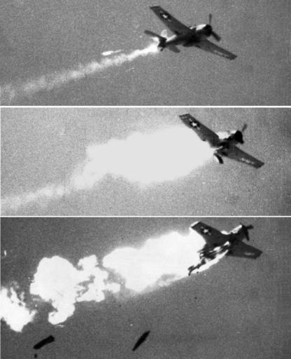 Keywords: AIM-9B hits F6F-5K over China Lake 1957.jpeg An AAM-N-7 later AIM-9B Sidewinder air-to-air missile fired from an Grumman F9F-8 Cougar hits an Grumman F6F-5K Hellcat drone over Naval Ordnance Test Station NOTS China Lake California USA 19 August 1957 Combination of http //collections naval aviation museum/emuwebdoncoms/pages/doncoms/Query php U S Navy National Museum of Naval Aviation photos No http //collections naval aviation museum/emuwebdoncoms/pages/doncoms/Display php irn 26312 QueryPage 2Femuwebdoncoms 2Fpages 2Fdoncoms 2FQuery php 1996 488 022 007 http //collections naval aviation museum/emuwebdoncoms/pages/doncoms/Display php irn 26313 QueryPage 2Femuwebdoncoms 2Fpages 2Fdoncoms 2FQuery php 1996 488 022 008 and http //collections naval aviation museum/emuwebdoncoms/pages/doncoms/Display php irn 26314 QueryPage 2Femuwebdoncoms 2Fpages 2Fdoncoms 2FQuery php 1996 488 022 009 1957-08-19 U S Navy PD-USGov-Military-Navy AIM-9 Sidewinder F6F Hellcat target drones Naval Air Weapons Station China Lake |