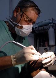 | Keywords: Air Force Lt. Col. Richard Tate, dentist, performs a tooth extraction.jpeg en PORT-AU-PRINCE Haiti Sept 4 2007 - Air Force Lt Col Richard Tate a dentist attached to Military Sealift Command MSC hospital ship USNS Comfort T-AH 20 performs a tooth extraction on a patient at Hôpital de l Université d Etat d Haiti Comfort is on a four-month humanitarian deployment to Latin America and the Caribbean providing medical treatment to patients in a dozen countries U S Navy photo by Mass Communication Specialist 2nd Class Joan E Kretschmer RELEASED 2007-09-04 070904-N-6278K-143 Navy http //www navy mil/view_image asp id 50377 U S Navy photo by Mass Communication Specialist 2nd Class Joan E Kretschmer PD-USGov-Military-Navy Military people of the United States in Port-au-Prince 2007 in Hôpital de l'Université d'Etat d'Haïti Port-au-Prince 2007 in Port-au-Prince 0904 September 2007 in Haiti 04 |