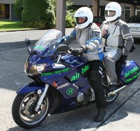 | Keywords: Airbike 8300.JPG en Airbike Ireland's first motorcycle passenger service The bikes are Yamaha FJR 1300A motorcycles; the same model used by police forces throughout Europe including the Garda Siochána Promotional photo from launch Cyril Moloney and Daniel Carley 2009-09-15 Photos are author's own and not published elsewhere Airbike Irish Motorcycle Passenger Service Motocab Yamaha FJR 1300 | ||||