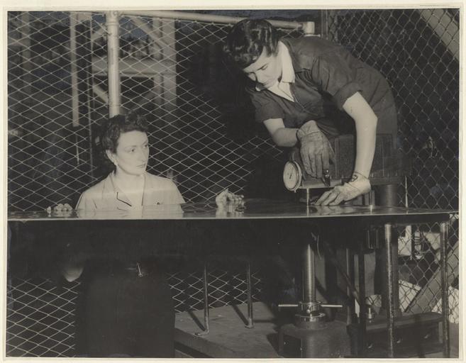 | Keywords: archives newsouthwales blackandwhite chullora factory aircraft machinery women wwii state records nsw staterecordsnsw aviation aircraft manufacturing aircraftmanufacturing airplane manufacturing airplanemanufacturing surreal photo border black and white Aircraft factory, Chullora. Every piece of metal used in the Beaufort is stringently tested. These women workers are using the Rockwell hardness test on sheet metal. The point of the machine presses on the metal and a simple reading of the dial gives the result. If the metal is too soft for use, it is placed in a normalising bath. Brought to a temperature of 490 degrees centigrade, the metal is made softer than when put back into the bath. When removed and kept at ordinary day temperatures, the metal hardens 90% in two hours and another 10% in the succeeding five days. The testing machinesare made in the U.S.A. Dated: c.1945 Digital ID: 17420_a014_a014001292 Rights: No known copyright restrictions www.records.nsw.gov.au/about-us/rights-and-permissions We'd love to hear from you if you use our photos/documents. Many other photos in our collection are available to view and browse on our website using Photo Investigator. Aircraft factory, Chullora. Every piece of metal used in the Beaufort is stringently tested. These women workers are using the Rockwell hardness test on sheet metal. The point of the machine presses on the metal and a simple reading of the dial gives the result. If the metal is too soft for use, it is placed in a normalising bath. Brought to a temperature of 490 degrees centigrade, the metal is made softer than when put back into the bath. When removed and kept at ordinary day temperatures, the metal hardens 90% in two hours and another 10% in the succeeding five days. The testing machinesare made in the U.S.A. Dated: c.1945 Digital ID: 17420_a014_a014001292 Rights: No known copyright restrictions www.records.nsw.gov.au/about-us/rights-and-permissions We'd love to hear from you if you use our photos/documents. Many other photos in our collection are available to view and browse on our website using Photo Investigator. |
