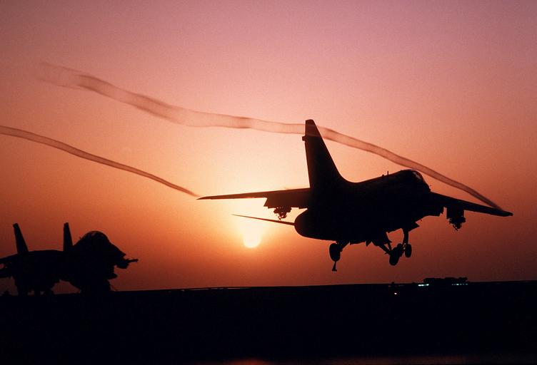 Keywords: aircraft fighter jet a-7 corsair sunset sunrise silhouette silhouettes colors colorful outside contrails beautiful